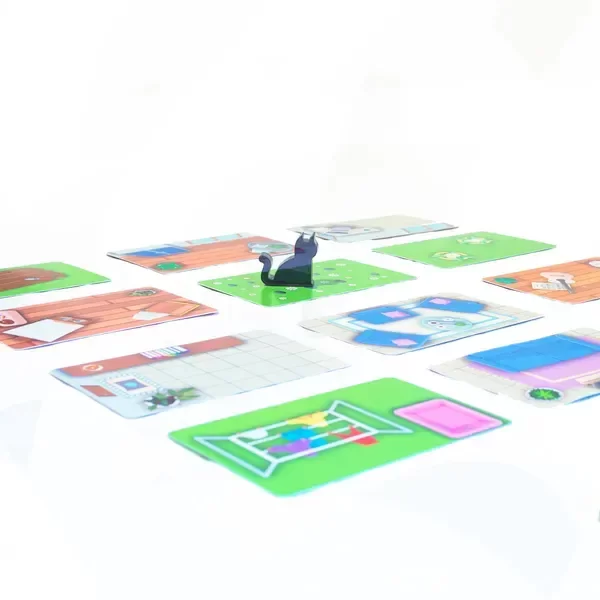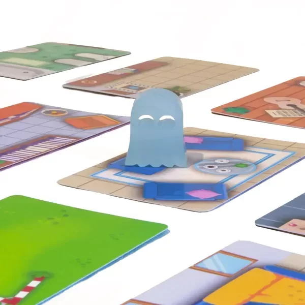 Alguien jugará como el Fantasma o el Gato, que irán moviéndose sobre las cartas que forman la casa, mientras el resto tiene los ojos cerrados. Luego volteará una carta, y pasados 10 segundos abrirán los ojos los demás para tratar de encontrar lo más rápido posible que carta se volteó.